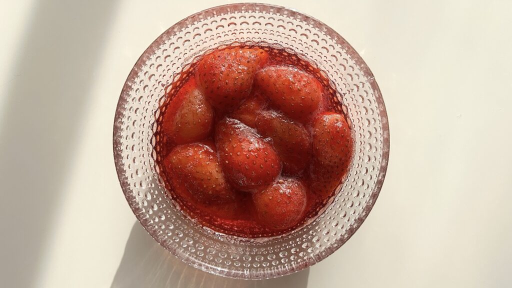 きらきらしている、とちおとめのコンポート。